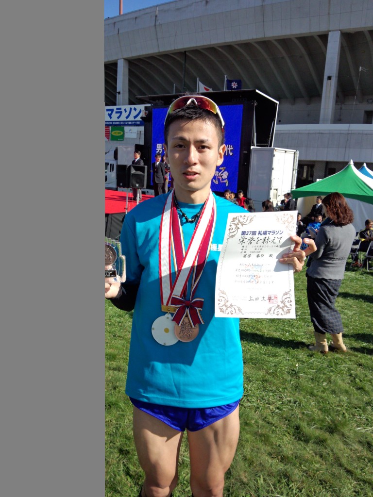 中学〜高校で陸上部に所属(中長距離)。兄に誘われ、社会人になって8年振りに再復帰、北極星ACに所属。ダイエット目的で始め、12Kg減量に成功。“走ることが大好き”な気持ちを改めて実感し、忘れかけていた“負けず嫌いの闘志”に火が付き、記録を更新中。平成23年からフルマラソンに挑戦。目標は“ウルトラマラソン100Kmを走ること”、”道民ランナーの星になること”。今年待望の長男が誕生し、新米パパランナーとして奮闘中。